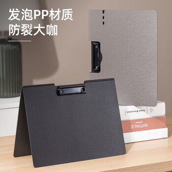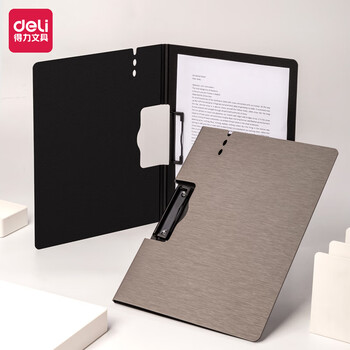 得力(deli)A4横式折页板夹文件夹 书写板夹写字板诗朗诵签约夹板 试卷资料收纳夹 办公学习用品64512浅灰