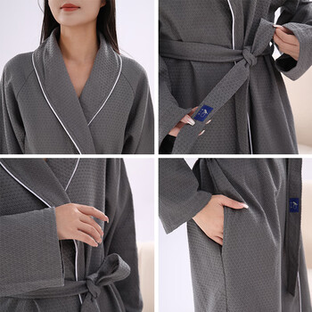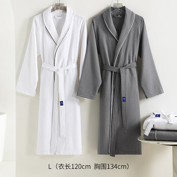 竹一百浴袍纯棉柔软吸水家居浴衣简约汗蒸服华夫格男女睡袍 深灰色 L码