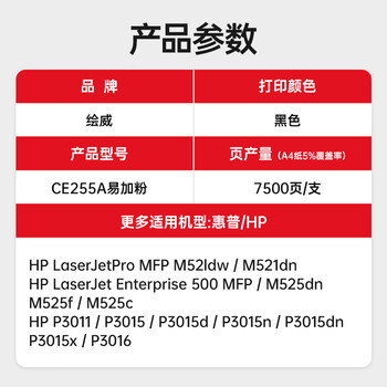 绘威CE255A 55A易加粉硒鼓 适用惠普hp P3015 M521dn m521dw M525dn M525f佳能CRG-324 LBP6750 LBP6780x墨盒