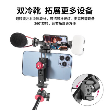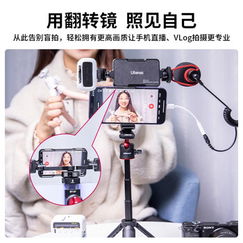 ulanzi 优篮子 双冷靴金属手机夹翻转镜套装横竖拍后置镜头自拍直播桌面VLOG摄影可拓展麦克风补光灯