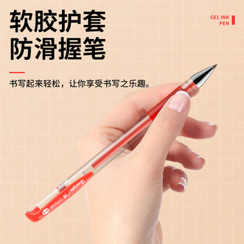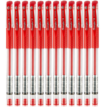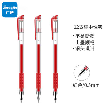 广博(GuangBo)中性笔签字笔 0.5mm子弹头红笔水笔 经典办公用品学生拔盖水笔老师批改 红色 12支/盒 ZX9008R