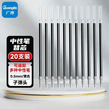 广博(GuangBo)中性笔芯替芯 0.5mm黑色子弹头笔芯 水笔签字笔替芯 水笔芯 20支/盒 办公用品文具ZX9T08D