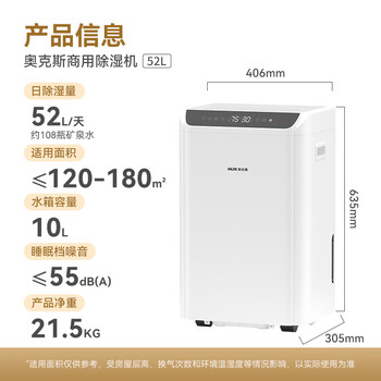 奥克斯(AUX)除湿机/抽湿机 除湿量52L/天地下室车库复式别墅 工商用除湿器KDY-DP52A