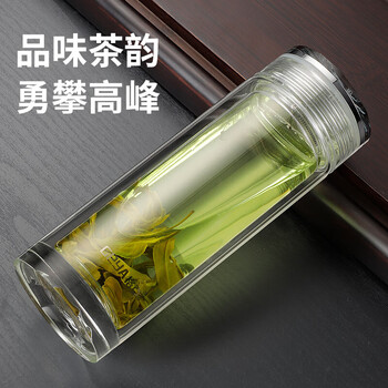 格亚(GEYA)登峰高端双层玻璃杯茶杯男士商务泡茶杯办公室杯子玻璃水杯礼盒装