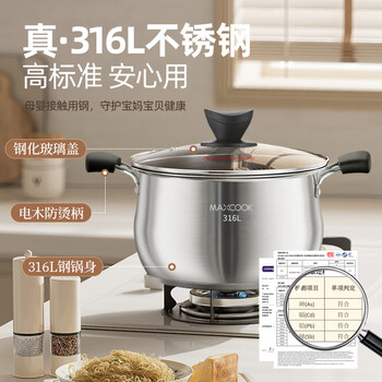 美厨(maxcook)汤锅 316L不锈钢汤锅汤煲20CM 加厚复合底MCT5954