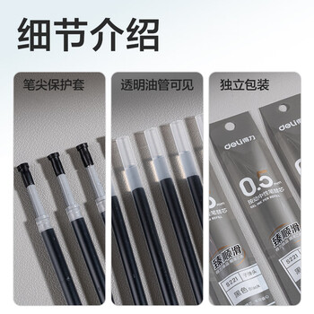 得力(deli)臻顺滑按动中性笔芯 学生办公签字笔替芯 S01/S08/1008/K35适用同G-5 0.5子弹头 黑色20支/盒S221