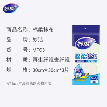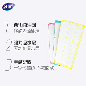 妙洁棉柔抹布 洗碗布吸水清洁纤维巾去油污厨房擦桌子地玻璃杯不掉毛干净用品工具 3片装