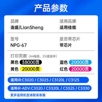 连盛npg-67粉盒适用佳能c3222l c3020 c3125 c3130l c3120l C3130L 3222 3520 打印机墨盒c3226墨粉盒黑色