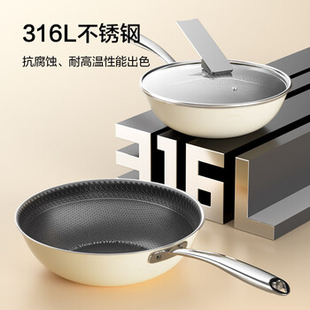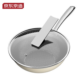 京东京造炒锅 316L不锈钢炒菜平底不粘煎锅电磁炉燃气灶【可立盖】30cm
