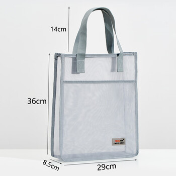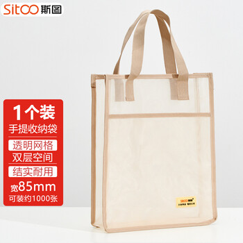 斯图(sitoo)装书手提袋 考试袋透明a4文件袋 科目分类作业书本收纳袋 双层网纱大容量补习袋拎书袋 杏色
