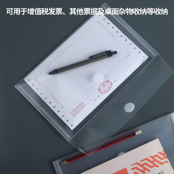 天章办公(TANGO)发票袋12个/包增值税专用发票袋普通发票收纳透明文件袋魔术贴资料袋