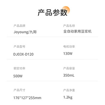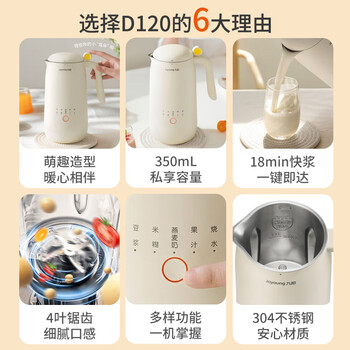 九阳(Joyoung)迷你豆浆机小型破壁免滤1-2人小容量家用米糊机DJ03X-D120(白)