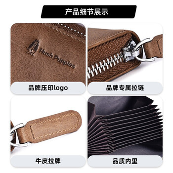 暇步士(Hush Puppies)卡包男真皮零钱包男证件夹风琴式收纳包名片夹生日礼物礼盒装