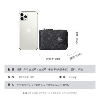 高尔夫(GOLF)卡包男士印花多卡位银行卡套拉链名片夹卡包女卡片包驾驶证套钱包