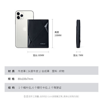 高尔夫(GOLF)头层牛皮卡包男士多卡位卡套银行卡包男轻薄皮套卡片包竖款小钱包