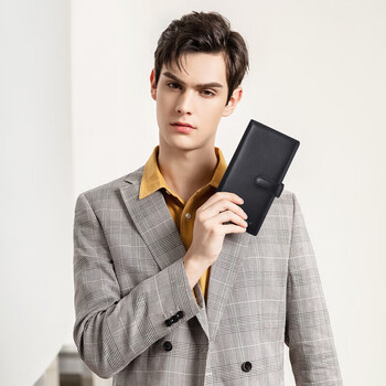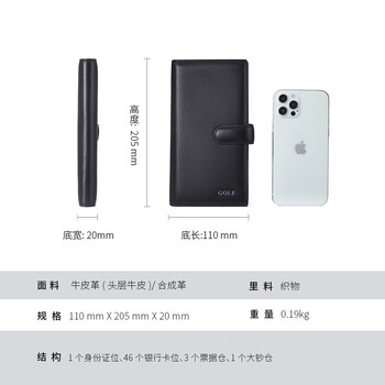 高尔夫GOLF卡包男士头层牛皮多卡位大容量银行卡片包防盗刷长款钱包男证件包商务钱夹5V718394J黑色