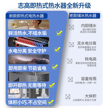 志高(CHIGO)即热式电热水器超薄8500W智能变频恒温速热小厨宝家用免储水功率可调包安装KBR-W5D
