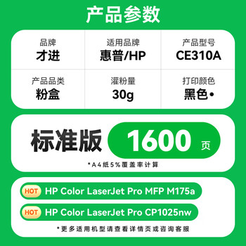 才进适用惠普CP1025粉盒nw黑色LaserJet hp1025 CE310A m176n打印机硒鼓M177fw CF350A佳能LBP7018C 7010墨盒