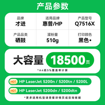 才进适用惠普5200硒鼓LaserJet 5200LX q7516a HP16A碳粉5200L 5200DN佳能3500硒鼓3900 crg-309打印机墨盒A3
