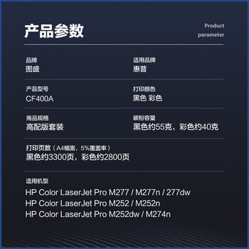 图盛CF400A硒鼓适用惠普M277dw硒鼓HP M252 M252n M252dn M252dw M277N M274n打印机硒鼓墨盒201A粉盒CF400X四色