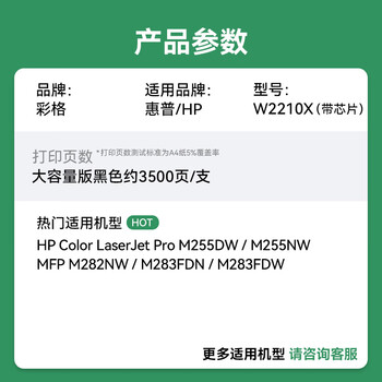 彩格W2210X黑色大容量带芯片硒鼓 适用惠普HP M255DW M255NW MFP M282NW M283FDN M283FDW彩色打印机墨粉盒