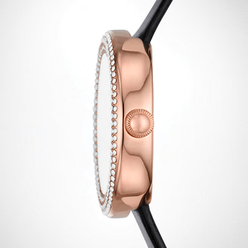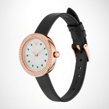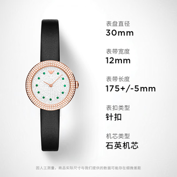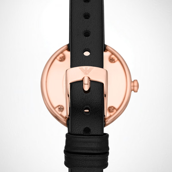EMPORIO ARMANI阿玛尼手表女士Rosa黑色皮带镶钻女士腕表 生日礼物送礼AR11492
