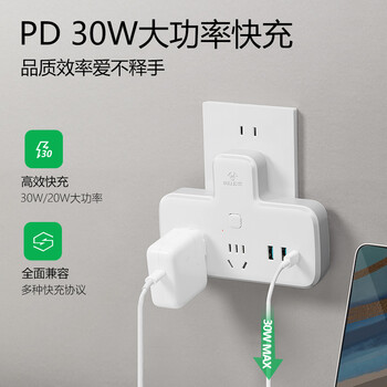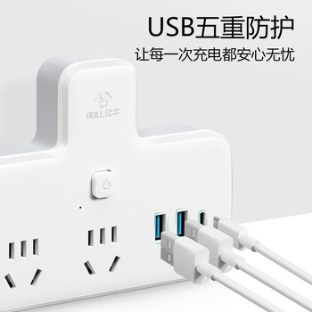 公牛(BULL)30W PD苹果快充插座扩展器一转多/一转二插座/转换插头/转换器/插排 2位总控+3USB GN-96021Q30