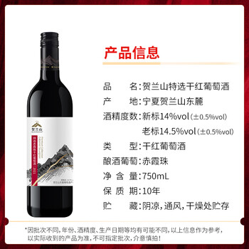 贺兰山宁夏贺兰山东麓产区【特选级】干红葡萄酒750mL六支红酒 送礼