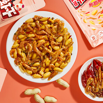 黄飞红(HUANGFEIHONG) 麻辣花生小虾干花生米98g*2袋 休闲零食网红小吃下酒菜花生仁