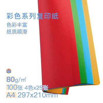 凯萨(KAISA)A4/100张4色混装打印纸80g a4彩色复印纸双面加厚打印儿童幼儿园学生手工彩纸剪纸折纸
