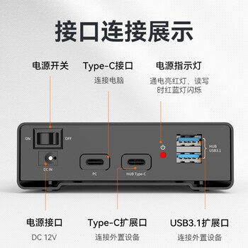 2.5/3.5英寸硬盘盒x1、12V3A电源适配器x1、螺丝刀x1、螺丝组x1、C TO A数据线(80CM长)x1、产品合格证x1、产品操作手册x1