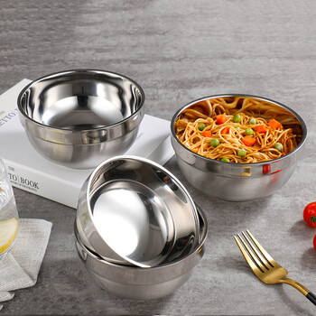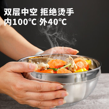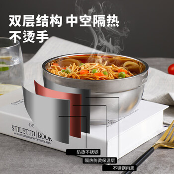 鲁凤来 .不锈钢碗 13cm双层防烫碗 食堂餐厅汤碗韩餐碗 10个