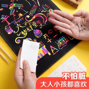 科朗鑫盛 开学必备 儿童炫彩diy手工刮刮画小学生益智刮画纸a4美术涂鸦刮蜡纸 A4 20张【送竹笔+模板】