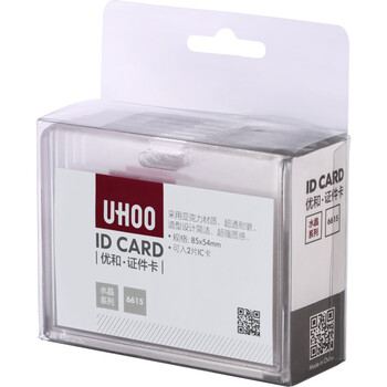 优和(UHOO) 6615 亚克力证件卡套 透明 横式 6个/盒 证件套 工作证 员工牌 胸卡