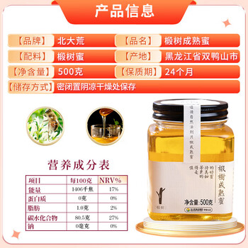 北大荒 东北黑蜂 椴树成熟蜜 纯蜂蜜500g 玻璃瓶装*1
