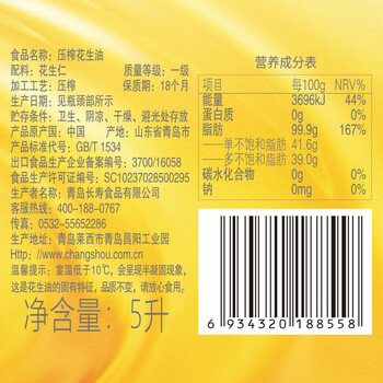 第一坊冷榨花生油5L食用油 家庭装食用油 实惠大桶装