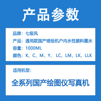 七级风写真机墨水八色一套(通用款8000ML)水性防水颜料室内适用国产绘图仪写真机