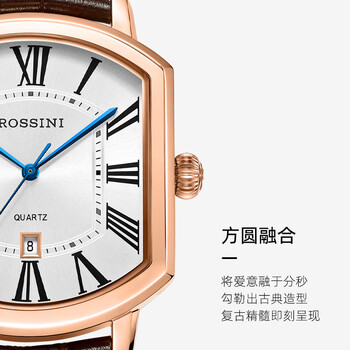 罗西尼(ROSSINI)男士手表石英表白盘皮带生日礼物送男友国表气质日历方形 121449