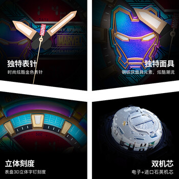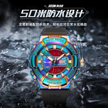 漫威(Marvel)钢铁侠系列运动电子表多功能防水手表初高中学生儿童生日礼物开学
