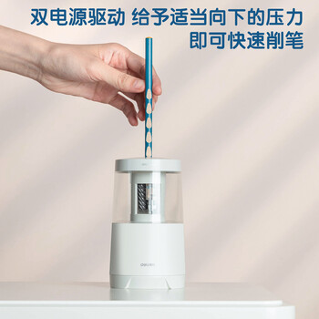 得力(deli)电动削笔机 双电源卷笔刀削笔器按压半自动排断芯转笔刀削笔刀 儿童学生文具考试生日开学礼物白色