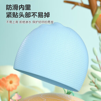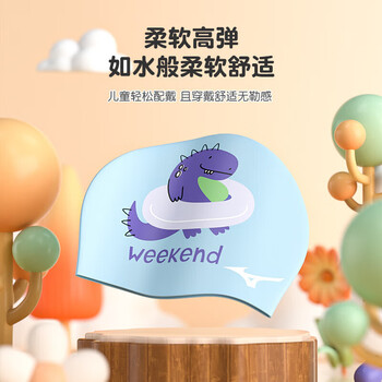 美津浓(MIZUNO)儿童泳帽男硅胶不勒头可爱专业防水护耳印花游泳帽N2CW2S08蓝恐龙