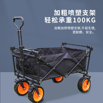 克鲁尼家用便携露营车可折叠行李拉杆车8寸标配越野轮双刹黑色小推车