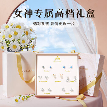 质检证书*1;精美礼盒*1;生日礼物女精美包装袋*1;925银耳钉*7对;