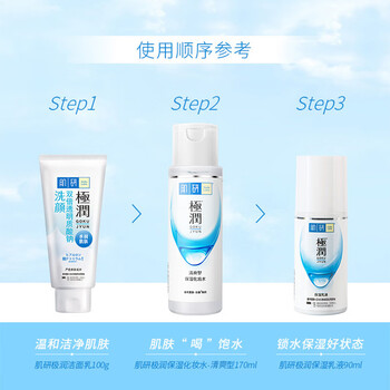 肌研极润清爽水乳三步洗面奶爽肤水乳液 玻尿酸补水敏感肌护肤套装