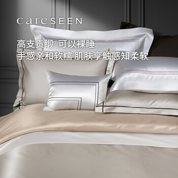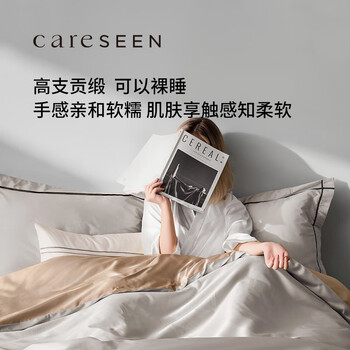 康尔馨酒店家纺 100支四件套纯棉 贡缎套件床单被套枕套 灰色 1.5米床