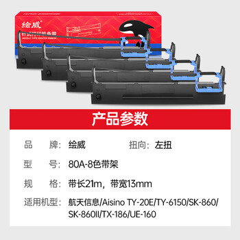 绘威80A-8色带架 适用航天信息AisinoTY-6150 SK-860 SK-860II TX-186 UE-160针式打印机色带 4支装