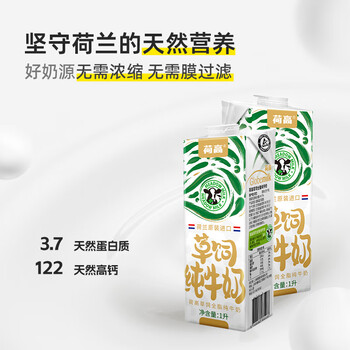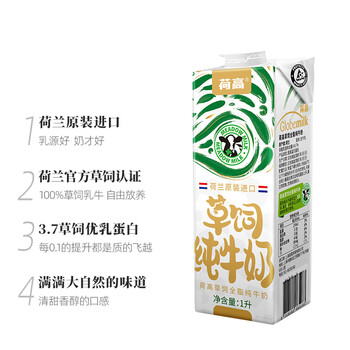 荷高草饲全脂纯牛奶1L*6盒