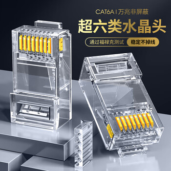万级 超六类RJ45水晶头 超6类万兆网络连接器 Cat6a非屏蔽两件式网线接头 电脑网络接头30个装WJ-15365
