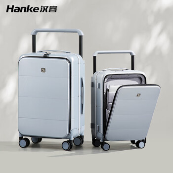 汉客(HANKE)宽拉杆行李箱铝框男前开盖拉杆箱女旅行箱20英寸环保灰登机密码箱
