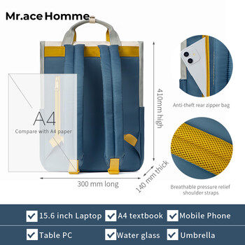 Mr.ace Homme星球系列 双肩包女学生书包休闲百搭电脑包通勤背包男星球蓝大号